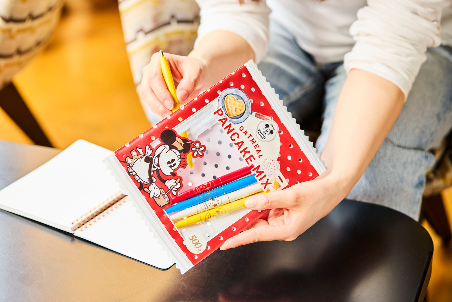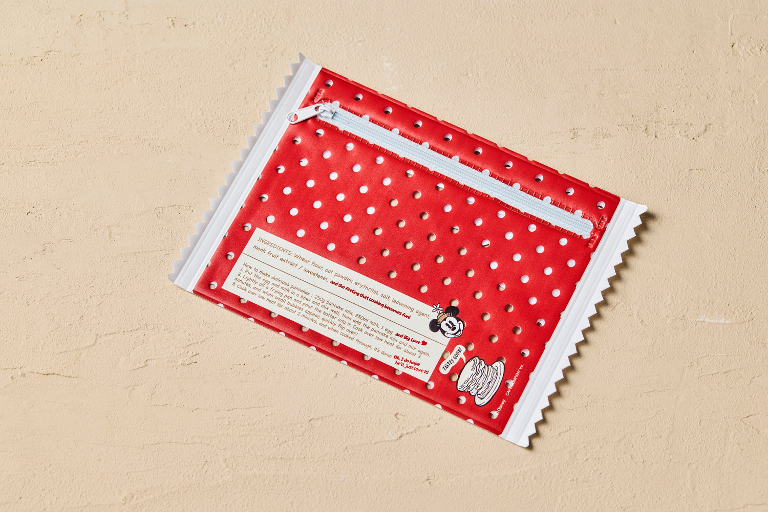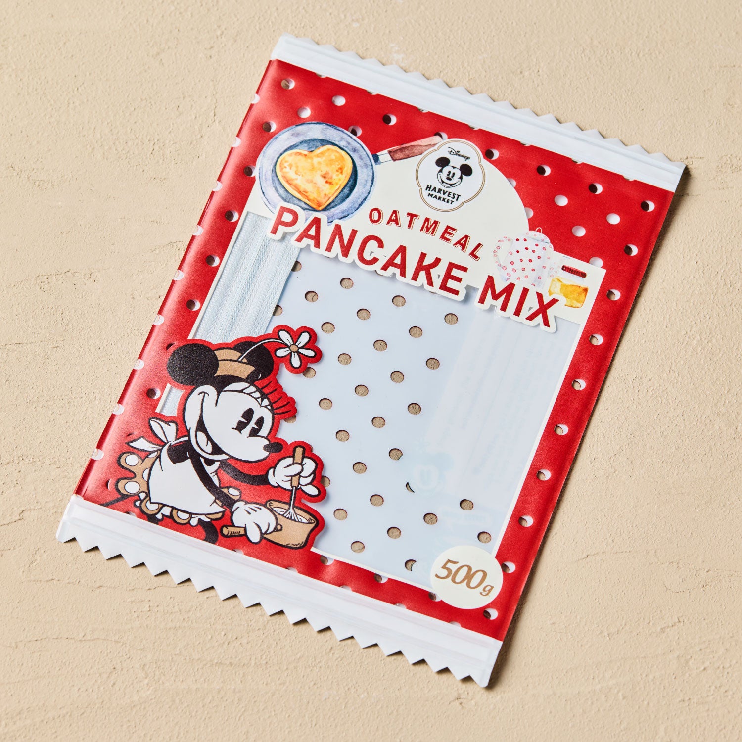 お店で販売中のパンケーキミックスを、ポーチにしました。Disney HARVEST MARKETオリジナルのミニー・マウス柄。